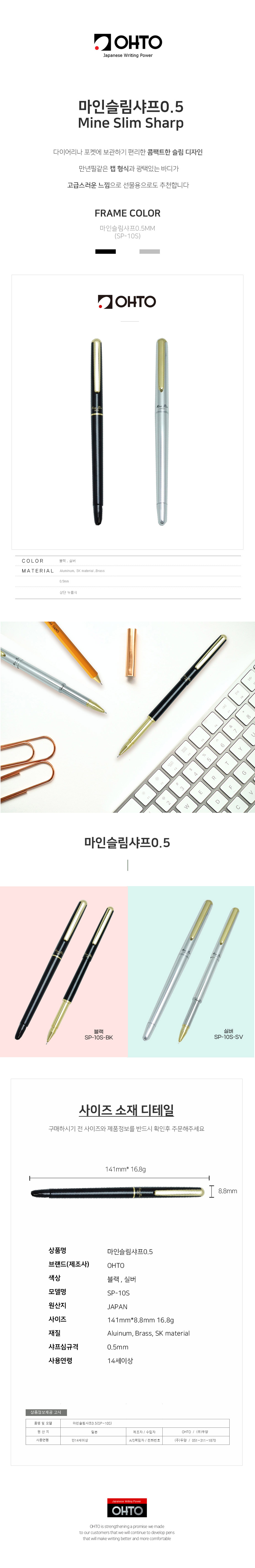 HOME > 필기류 > 샤프/샤프심 > 샤프 > OHTO 오토 마인슬림샤프 0.5 SP-10S MinesSlim Sharp