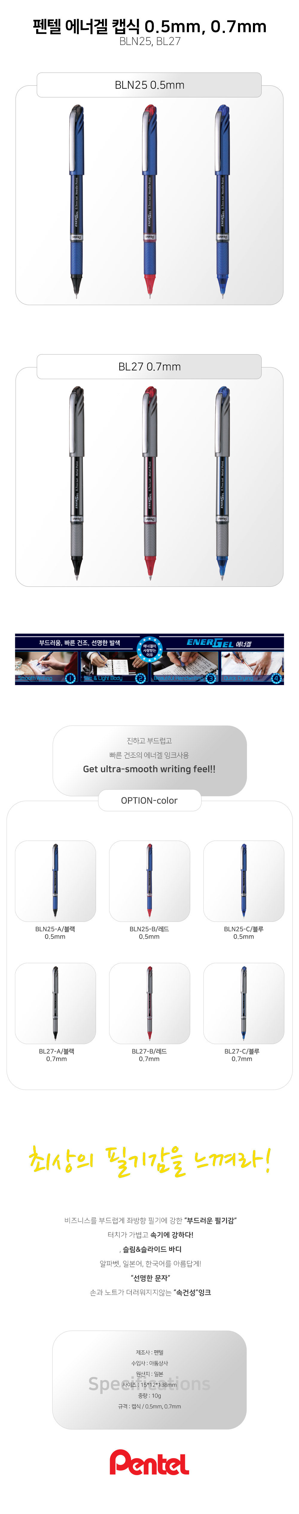 HOME > 필기류 > 볼펜 > 중성펜 > 펜텔 에너겔 캡식 0.5mm, 0.7mm